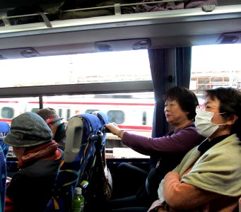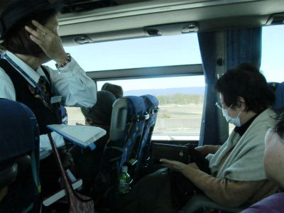 ![]() 伊勢までの時間を使い、車内販売がガイドさんの軽快な話術にはまり良く売れていました(Kinukoさんもお買い上げ) |