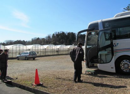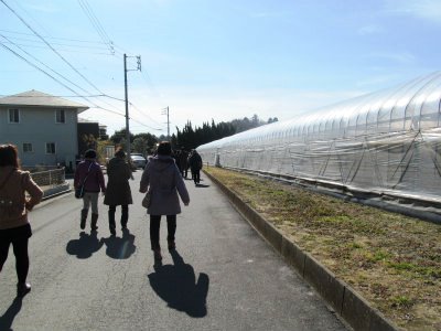 ![]() PAでは寒かったが、ハウス内は暖かいので薄着でバスから降りて移動。 |
