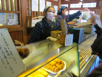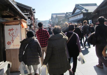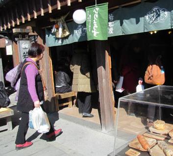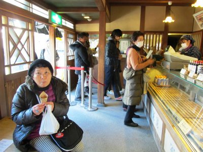 ![]() 伊勢神宮到着(私達4人は内宮へ行かず『古市』へタクシーで観光)2時間30分の自由行動*その前にトイレ(みやげ物屋へ) |