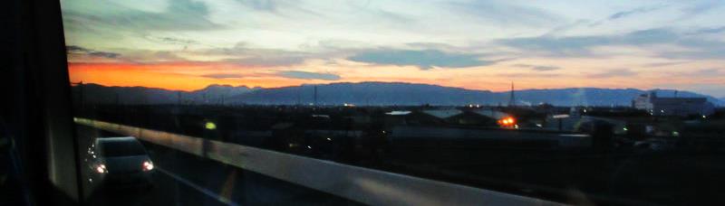![]() 夕焼けが養老山脈・鈴鹿山脈のシルエットを映し出す |