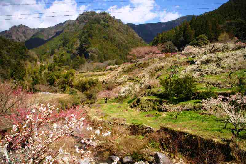 ![]() 山間の傾斜地に広がる満開の原野風景は、現代の桃源郷といえるかも! |