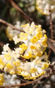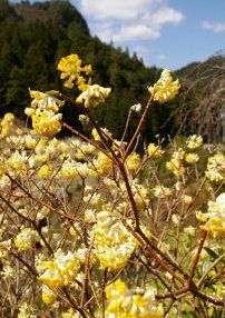 ![]() ![]() 『梅花まつり売店』を横に見てどんどん登る(2度目なので要領が分かっています) ミツマタの花も満開でした。 |