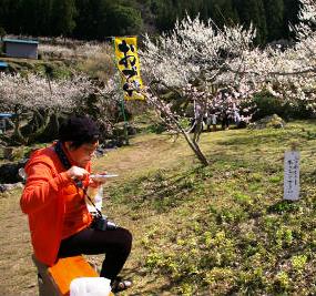 ![]() 『川売かおれの梅』 新城市川売地区の梅園です。 車は路駐! 咲乱れる梅は、11戸の農家が南高をはじめとした7品種を約1500本栽培している。 |