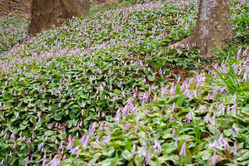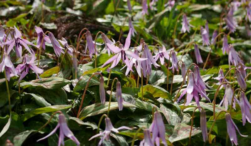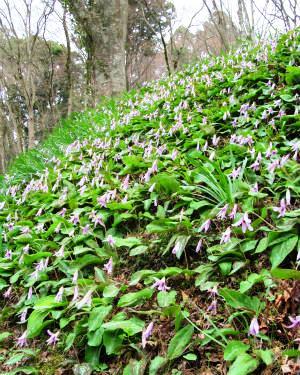 ![]() 訪れた時はとても寒い曇り空で花は開いていません。 カタクリの花は陽が当たらないと開かないのですね! |