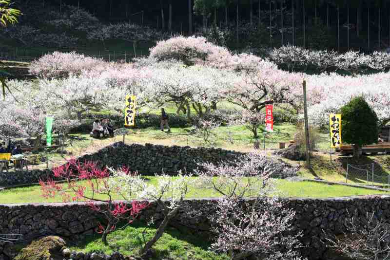 ![]() 約500本の紅白の梅が咲く花の名所展望台より |