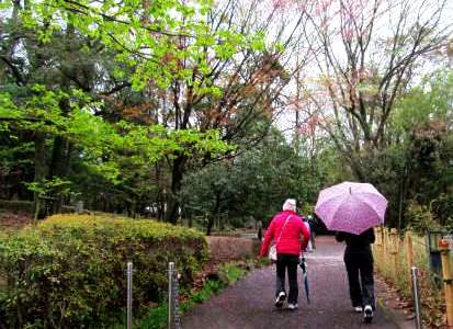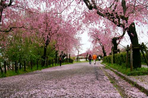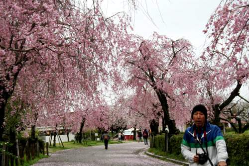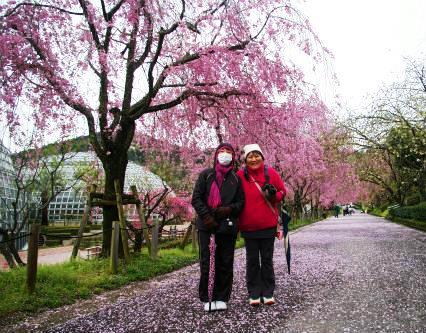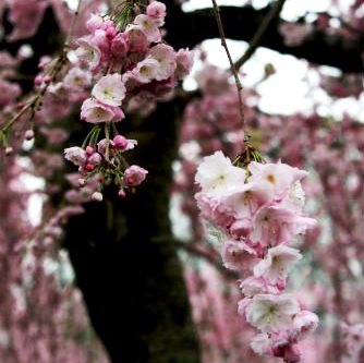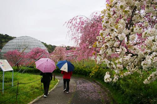 ![]() 雨に濡れたヤエベニシダレ桜の絨毯を踏みながら 『ウコン桜』サクラのうちで唯一、黄色の花を咲かせる |