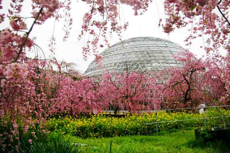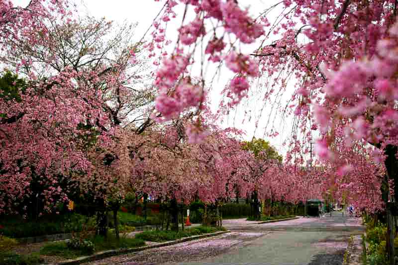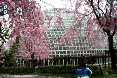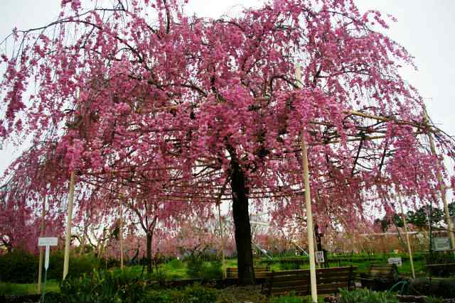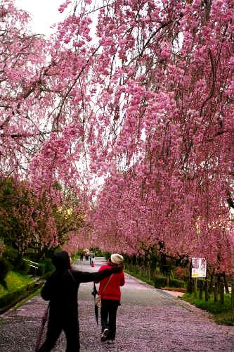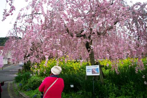 ![]() ヤエベニシダレ桜の鮮やかさ! 目の前まで垂れ下がって咲く見事な光景が見られました。 |