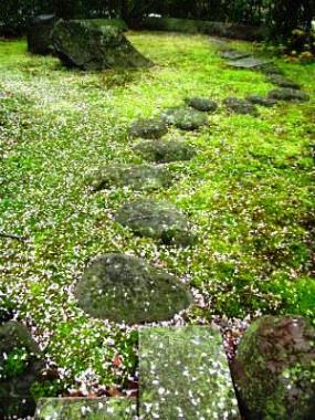 ![]() 庭には枝垂れ桜があり苔の上に、二度目の花を咲かせていました。 |