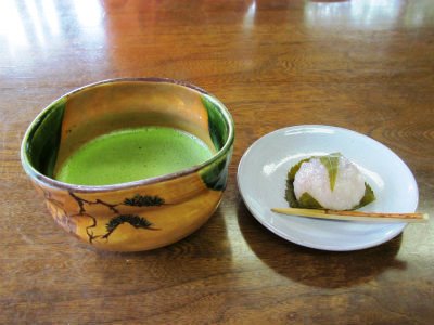 ![]() 3/15に来た時とは景色に変化がありました 今日のお茶菓子は「桜もち」 |
