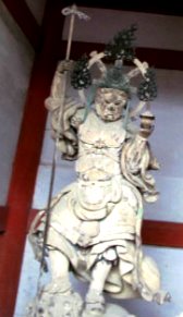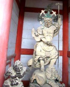 ![]() 『應天門おうてんもん』 扁額は空海の筆によるものと言われている。「弘法にも筆の誤り」ということわざは、空海(弘法大師)が応天門の扁額を書いた際に「應」の一画目の点を書き忘れてしまった(まだれをがんだれにしてしまった)が、空海は掲げられた額を降ろさずに筆を投げつけて書き足したという伝承に由来する。 |