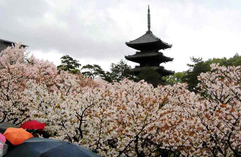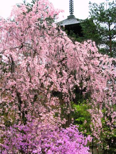 ![]() 『わたしゃお多福 御室の桜 鼻が低ても 人が好く』 京都で最も遅咲きの桜 五重塔 1644(寛永21)年築。高さ約36m:各層の屋根の大きさがほぼ同じは江戸期の特徴。
