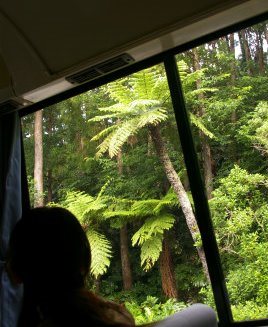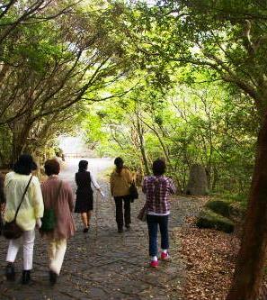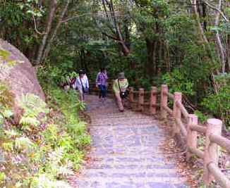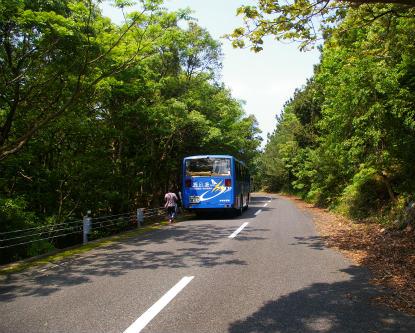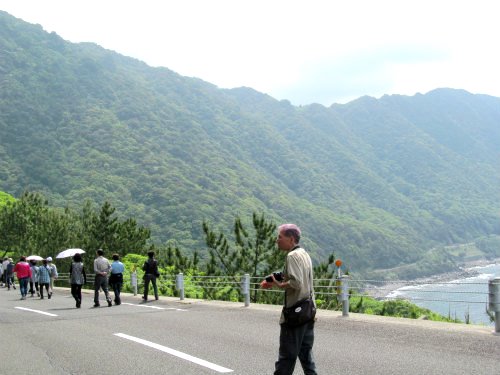 ![]() 世界遺産『西部林道』 大型バスは道幅が狭く通行できませんので、途中で降りてしばらく歩いて自然に触れました。 |