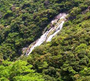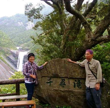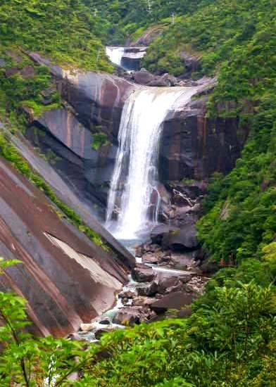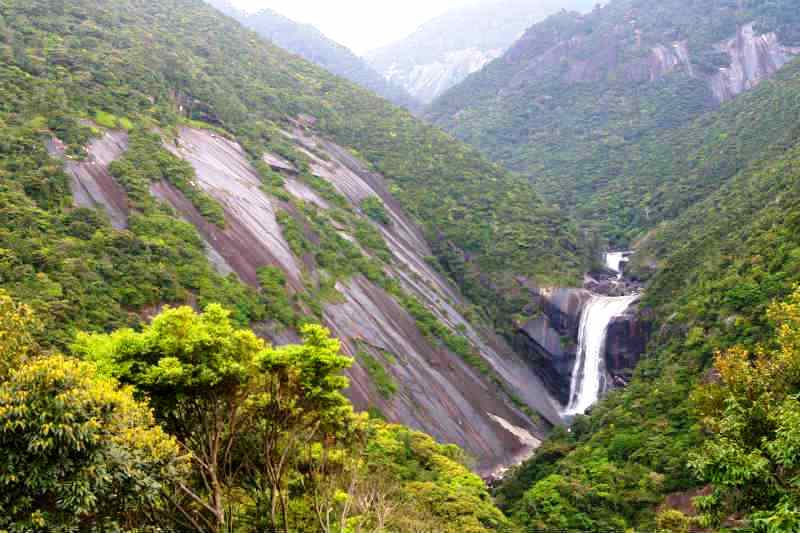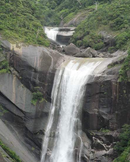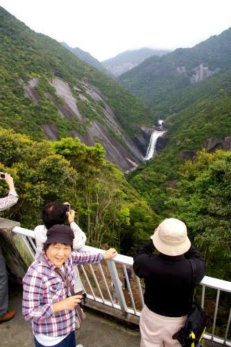 ![]() 『千尋の滝』 屋久島の三大銘瀑の一つで、 落差80mの豊富な水量を誇る滝と約200mの花崗岩の 一枚岩。 |