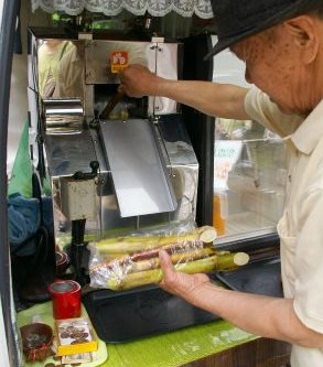 ![]() ![]() ![]() ガイドさんお勧めの「砂糖キビ生ジュース&たんかん生ジュース」をいち早く注文した |