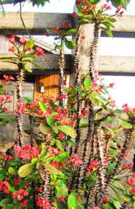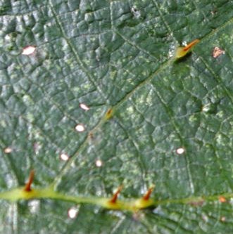 ![]() 葉の裏表にバラのトゲのようなものがあり、動物に花の実が取られないよう進化した。 |