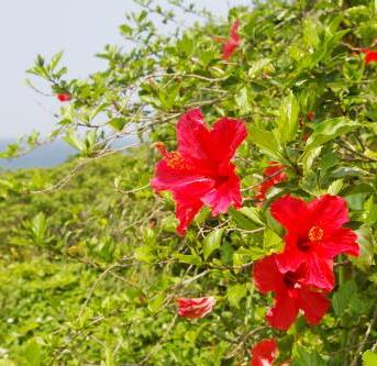 ![]() 黒崎公園で休憩 ハイビスカスが鮮やかに咲いていました |