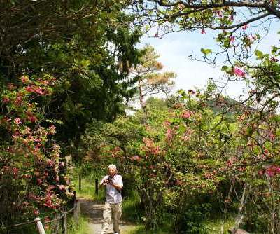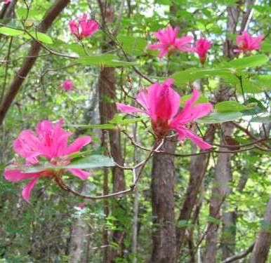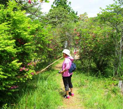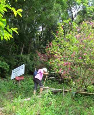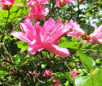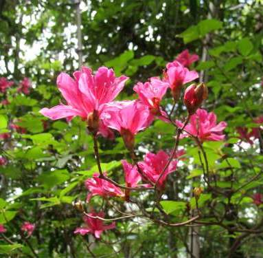![]() 5〜6メートルにも達する大きな木々に葉が3枚ずつ輪生し、花も3輪ずつつける特徴があるり、別名ジングウツツジ。 |