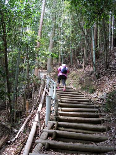 ![]() からくり人形を見てスタートです。 ここからゆっくり15分(ひざが痛いので20分)で登って行きます |
