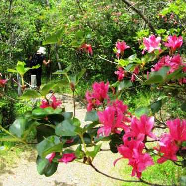 ![]() 蛇紋岩という岩石を含んだ地帯にのみ自生する分布範囲の狭い貴重な植物で、絶滅が危惧されているツツジです。 |