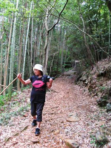 ![]() 下山は楽なのか元気よく歩いていました。 側溝にヘビを見つけたらMasamiは固まって動きません! |