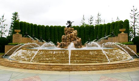 ![]() ポーターに荷物を運んでもらう! ホテル前にある噴水 |
