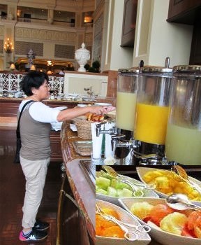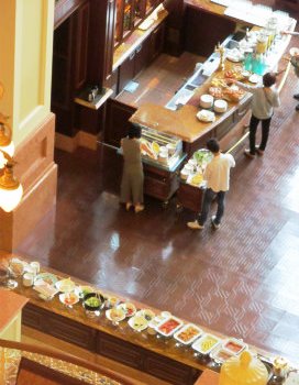 ![]() 大きな窓からホテルの中庭、リゾートラインの駅が見えます。 ついつい食べ過ぎてしまいます! |