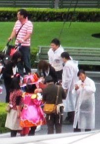 ![]() ![]() DLホテルのパジャマです。 TDLのスタッフはレインコートを着てミッキー&ミニーの記念写真にちょっと忙しそう! ミッキー・ミニーは雨の日限定のレインコートを着ています。 |