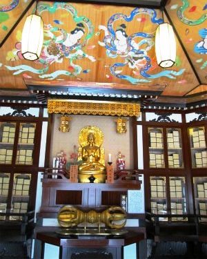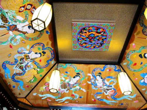 ![]() 経蔵の天井画には天女、蔵には中国最後の木版大蔵経「乾隆版大蔵経」7240巻が収蔵されています。 |