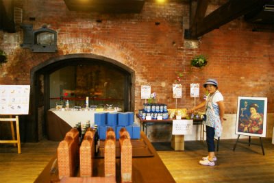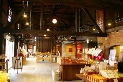 ![]() 生カブトビールが飲める「カフェ ブリック」と土産物店もある |