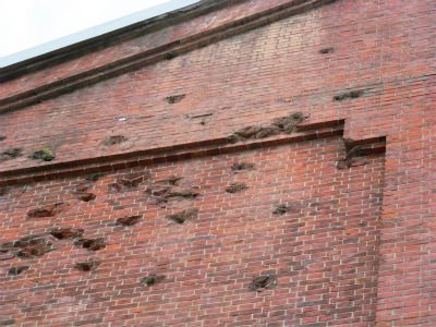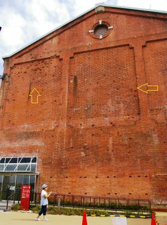 ![]() 矢印は空襲で銃撃された跡が生々しく残る |