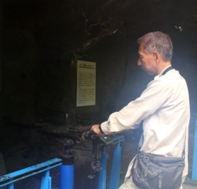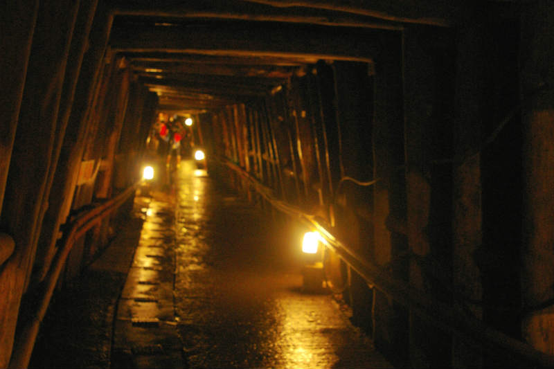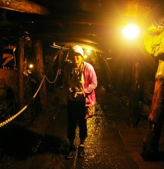 ![]() 閉山後に坑内の一部が開放され、トロッコ電車に乗って全長700メートルの薄暗い坑道に入っていくと・・・ |