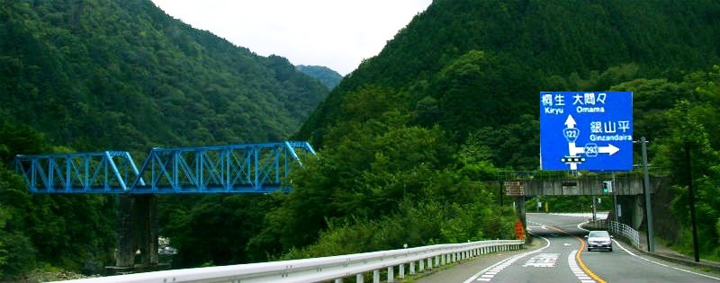 ![]() R122から外れ、わたらせ渓谷を眺め渡良瀬川に沿って伸びる街道を走ると、足尾銅山。 |
