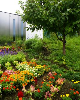 ![]() 足元の花は観光客を楽しませるために植えた感じです |