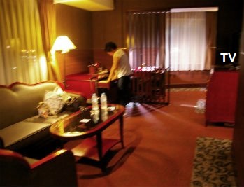 ![]() 0811号室 広さ60uの開放的なスイートルーム * ツインルーム(150p幅のくつろぎダブルベッド) TVが寝室にないのが難点と!(私は早く静かなベッドで眠りにつく) 1人 7,350円(夕食なし)と大奮発です。 |