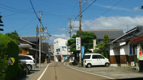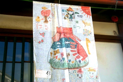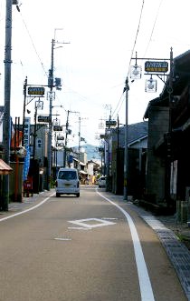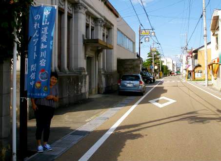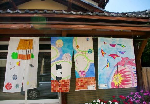 ![]() 夏の街道筋。軒にゆらめくのは、数々の手づくりのれん。 |