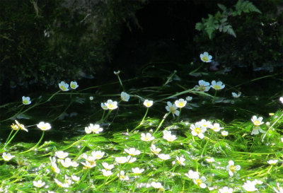 ![]() 夏の梅花藻は水かさが下がり花が水面に出てきてきれいです 梅雨時に咲く梅花藻は水中でゆらゆらと、一味違った趣があります。 |