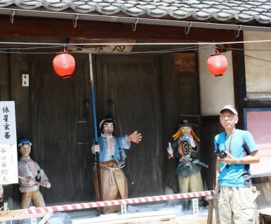 ![]() 大きな冠木門かぶきもん(京都方面の西側) 中山道「愛知川宿」で『のれんアート』をやっていると聞き足を伸ばした。 |