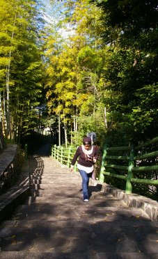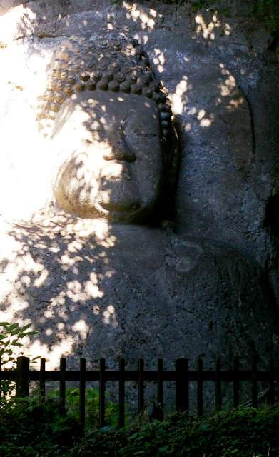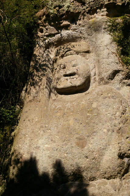 ![]() 入口から急な山道を300mほど分け入ると、自然石の凄い階段口にたどり着く。 日本最大級のスケールの磨崖仏へGo! |