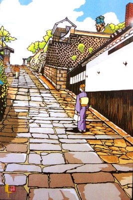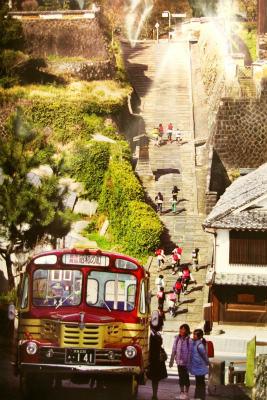 ![]() 江戸時代の風情が今なお残る杵築。 パンフレットに掲載の志保屋の坂 |