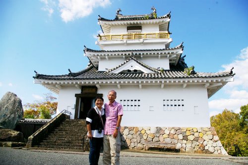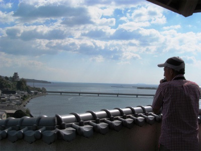 ![]() 観光案内所から高台の杵築城まで車で移動 |