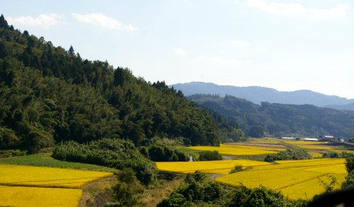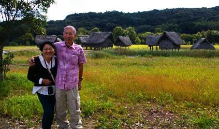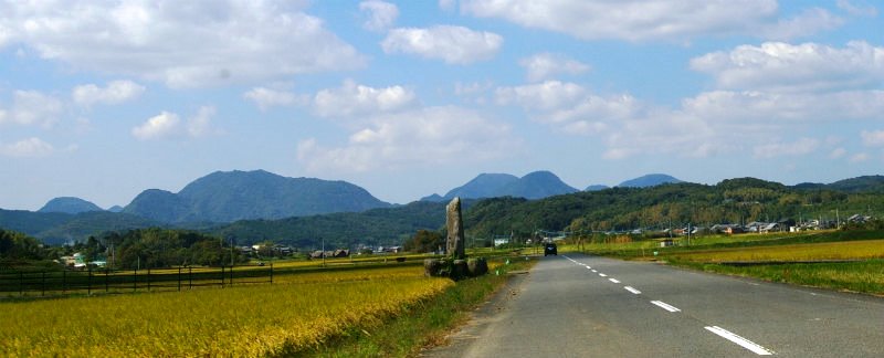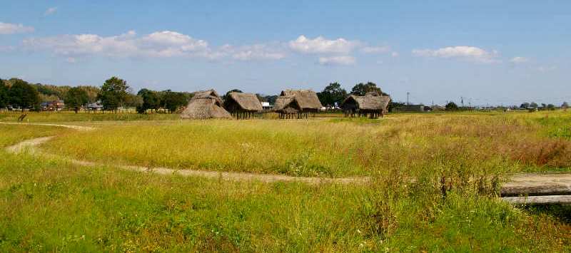 ![]() 『弥生のムラ』 杵築城から25k程走ると、たわわに実った稲の彼方に見えてきました。 |