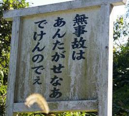![]() 方言で書いたる標語が、ものすごー面白かったんで撮ってきた。 |