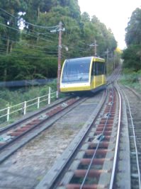 ![]() 私達2人かと思っていたら、8人家族が乗ってきました。 かなりの急斜面です すれちがい! |