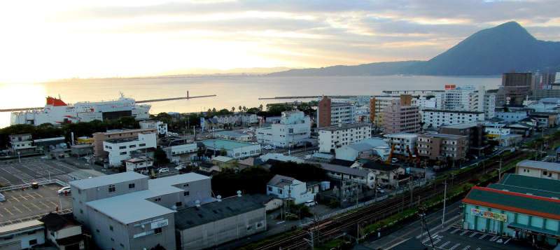 ![]() Am6:30 カーテンを開けるとすでに陽は昇っていた。 別府港には大きな船が・・・ |