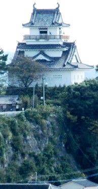 ![]() 展望台から八坂川をお堀にしてそそり立つ杵築城が見える |