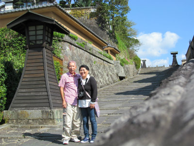 ![]() 緩やかな傾斜と広い階段は、馬や龍かきの歩幅に合うように配慮されたものです。富士山や扇の形をした石が沢山使用。 |