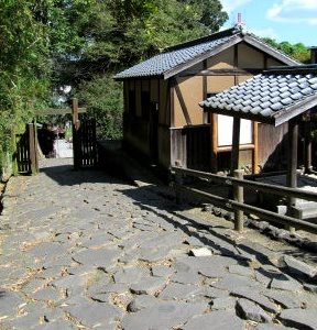![]() 北浜口番所と番所の坂 このように凹凸のある”サンドイッチ型”城下町は、杵築だけだと言われています。 |