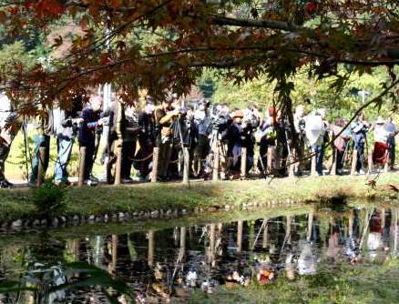 ![]() カメラマンの多さに困り肩越しに撮影(名古屋のTV局も大きな三脚を立て撮影) |