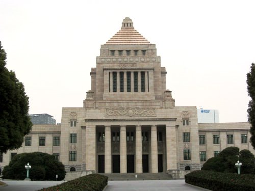 「はとバス」国会議事堂と東京スカイツリー