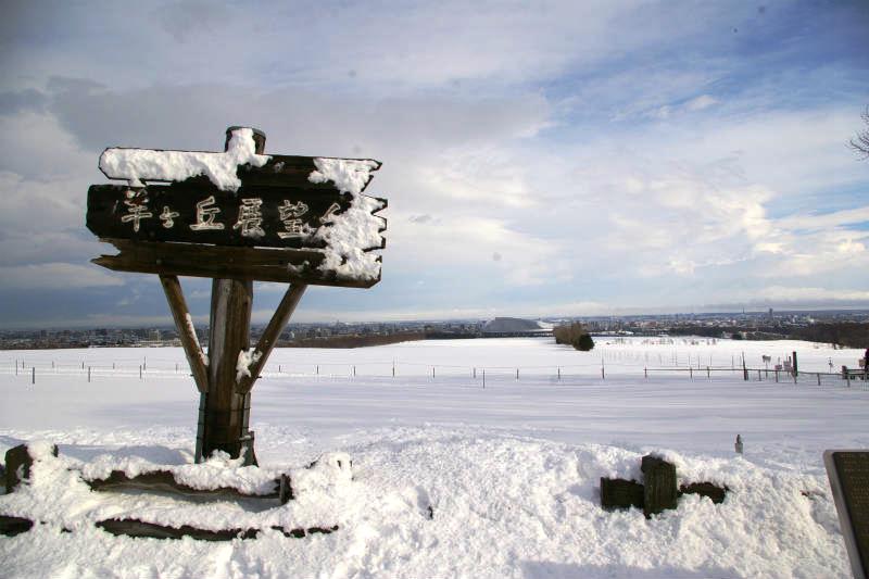 ![]() 雪原の奥に札幌ドームが見えます |